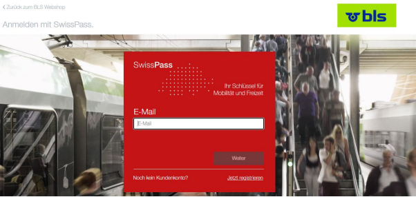 Es öffnet sich die SwissPass Login Maske, dort Login-E-Mail und Passwort eingeben: